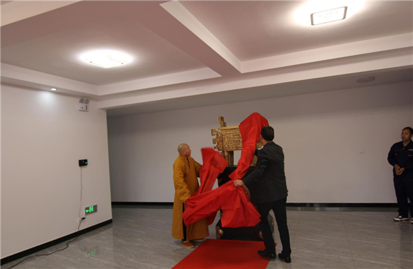 少林高僧致辭并與魏總一起揭鼎